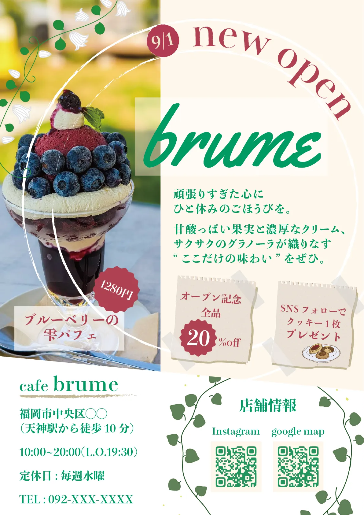 カフェのオープン記念チラシ